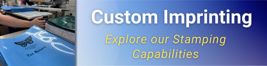 With our custom imprinting services, you can create unique promotional products that represent your brand. Our hot stamping imprint method uses foil materials instead of silk screening, creating high-quality designs for our customers. We can customize our pocket folders, vinyl products, and holders with your organization's name, logo, or other information. If you need a product that meets your exact needs, we can even design one for you.
