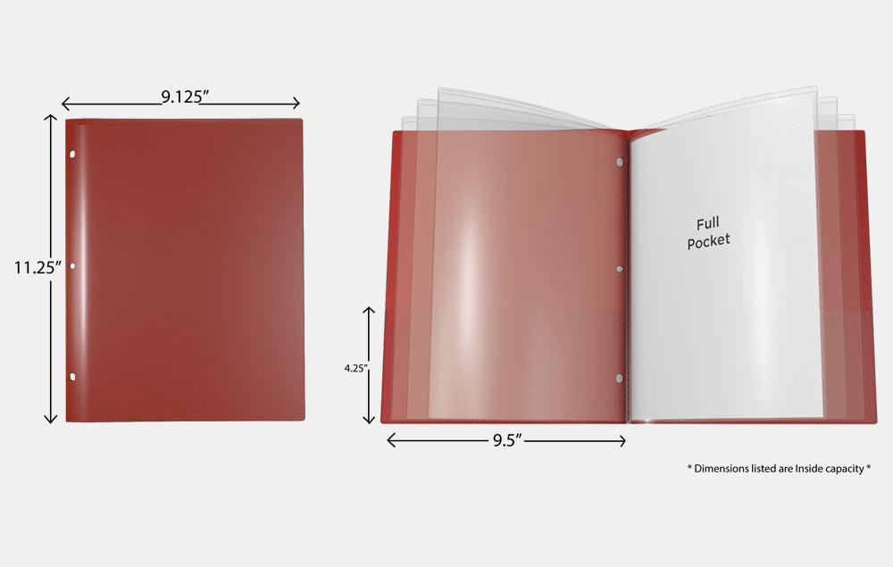This folder is conveniently hole-punched to fit a standard 3-ring binder, allowing for seamless integration into your existing organizational system. Choose between punched or non-punched options, based on your preference. If you don't see a combination that meets your needs you can always contact us for a quote to create a special order!