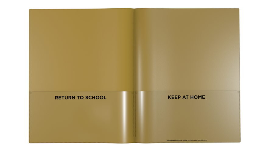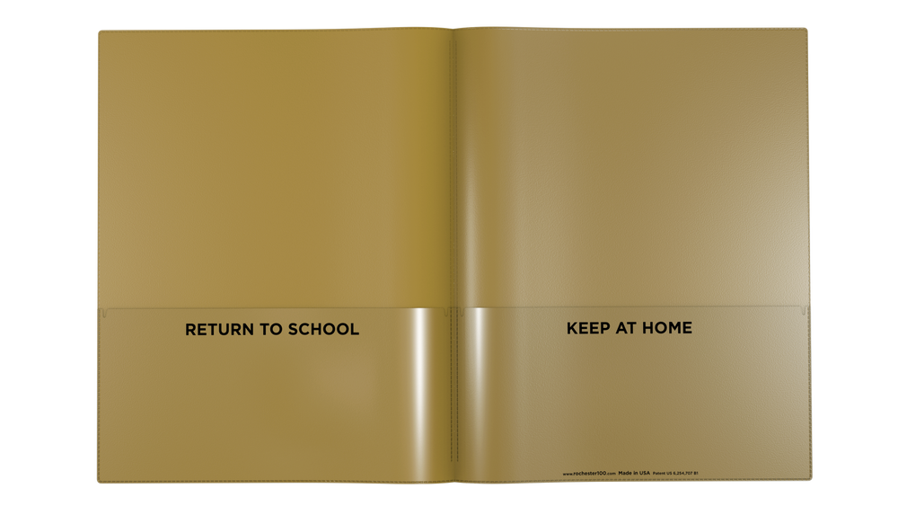 Front wording is printed in SHINY GOLD on all colored folders except Orange and Yellow folders. Orange and Yellow folders front wording is printed in BLACK.