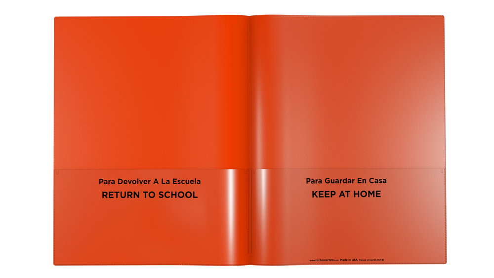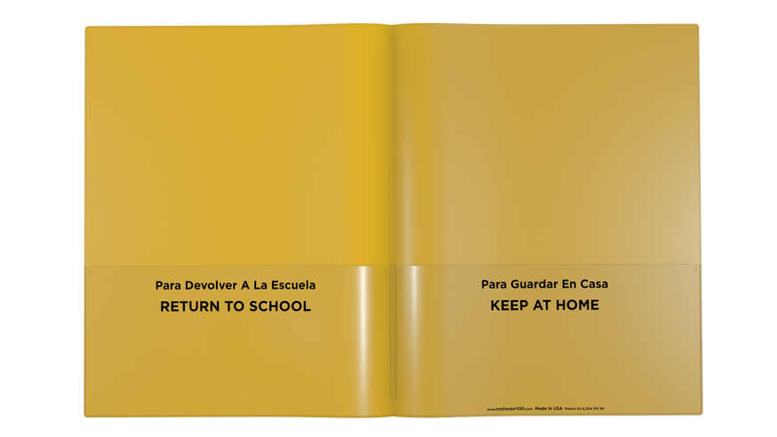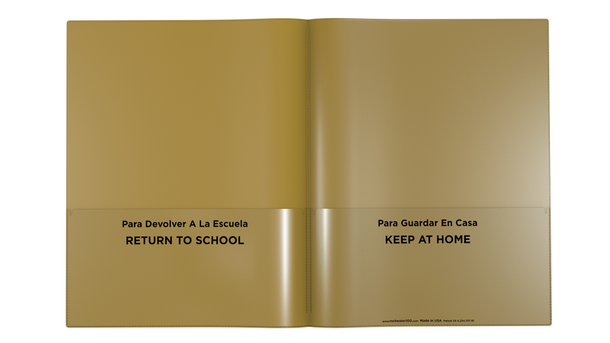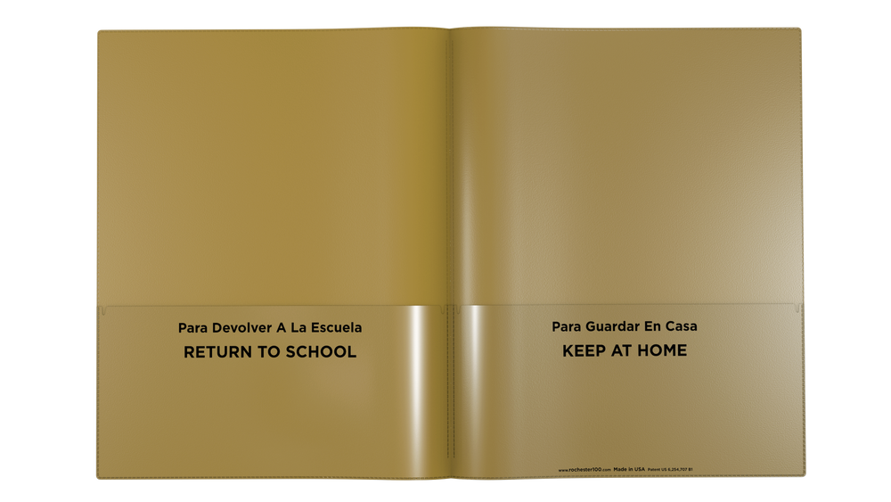 Front wording is printed in SHINY GOLD on all colored folders except Orange and Yellow folders. Orange and Yellow folders front wording is printed in BLACK.